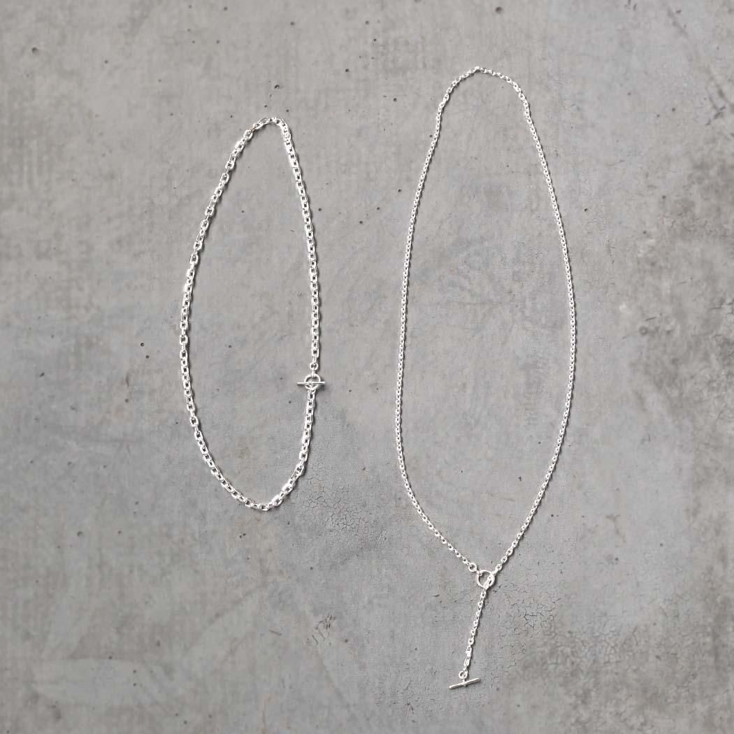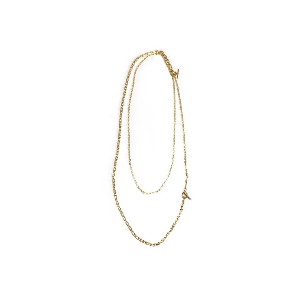 2種類のチェーンネックレスがつながったマルチウェイなアイテム。