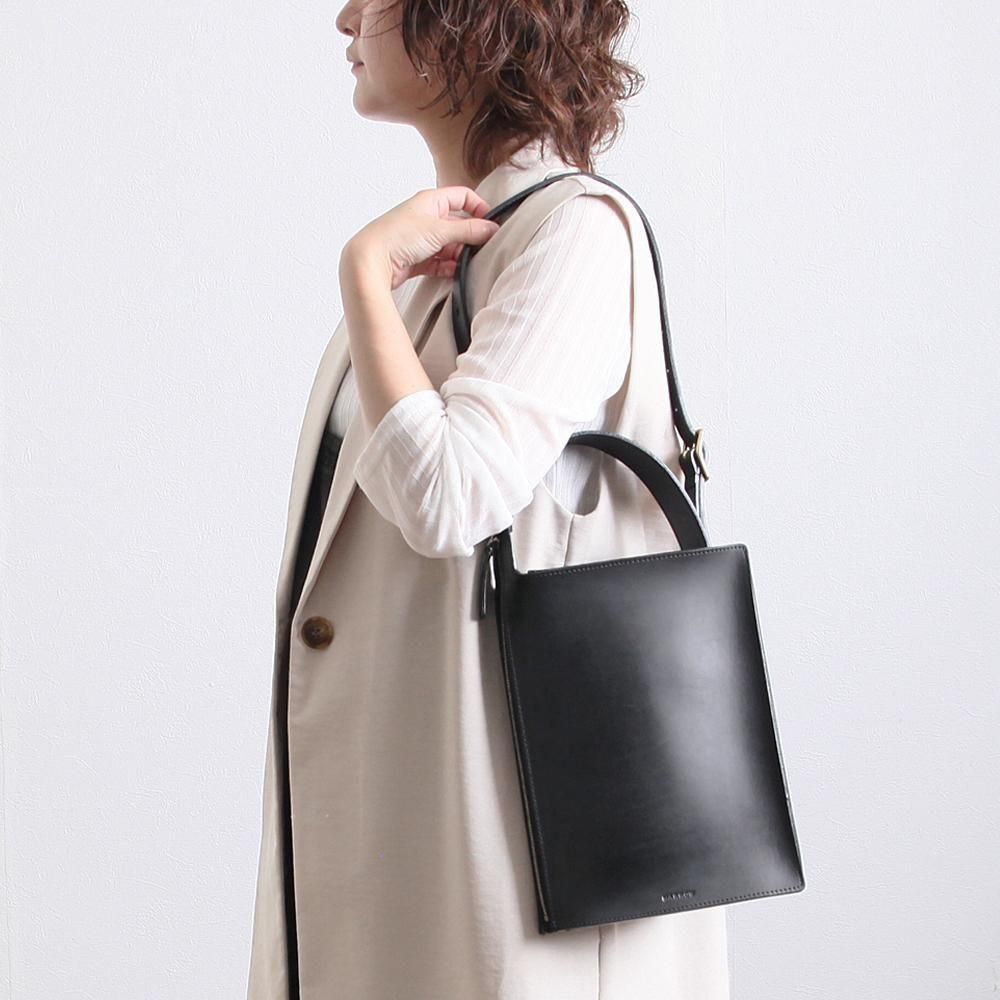 ショルダーストラップを加えることで、より汎用性の高いハンドバッグへと進化させた一作。