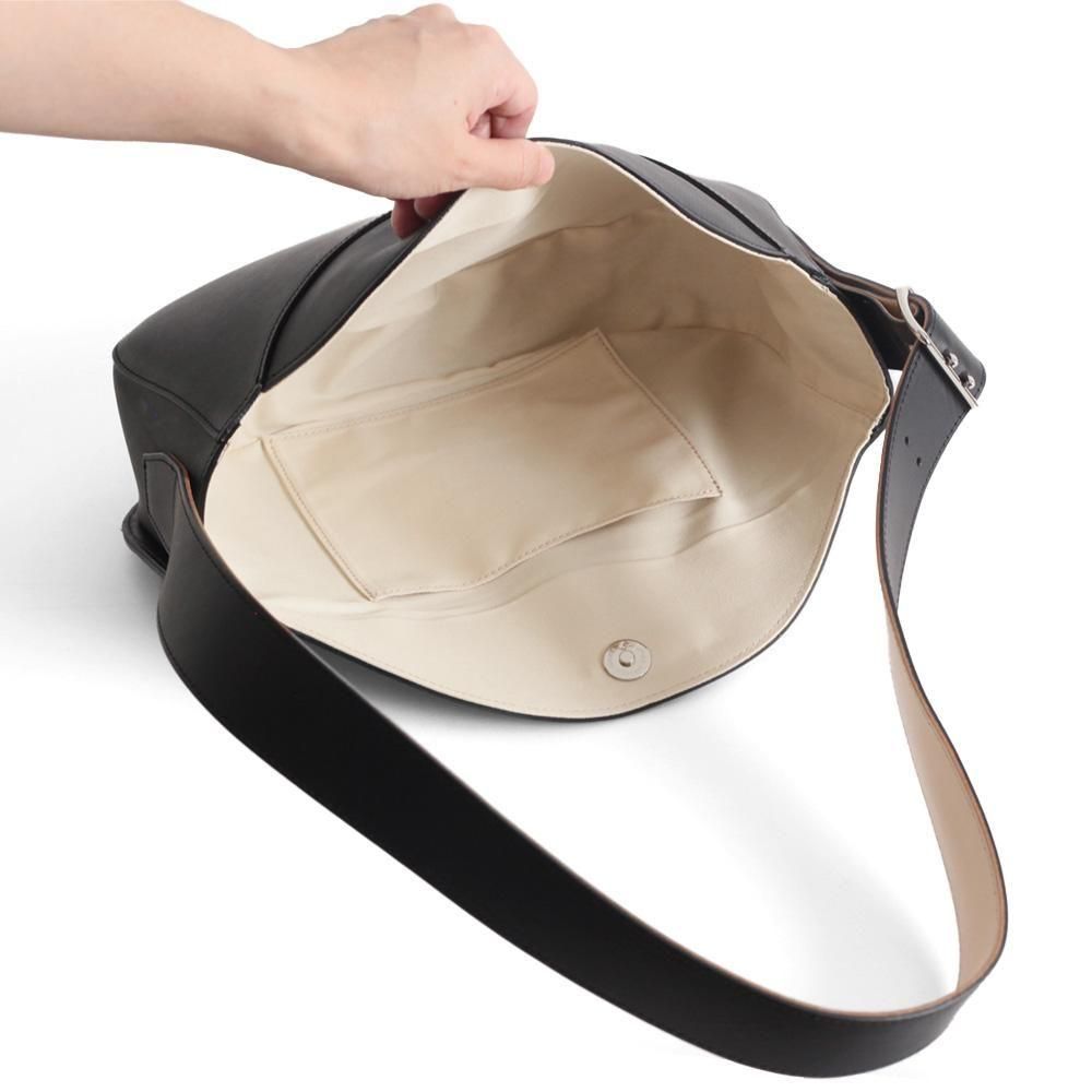 ショルダーの内側にはヌメ革を使用し、重厚感を抑えつつ、抜け感と柔らかさをプラス。