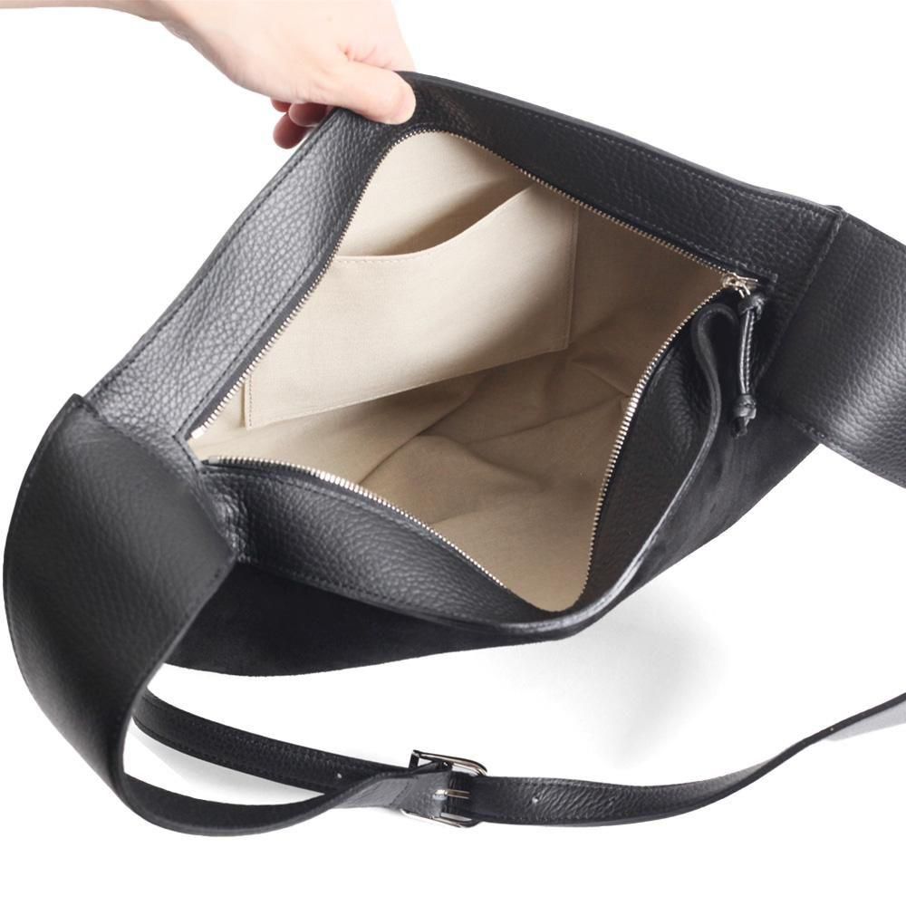 革カスがこぼれることなく、しっかりとした張りが生まれることで、美しいバッグの形状を保ちます。