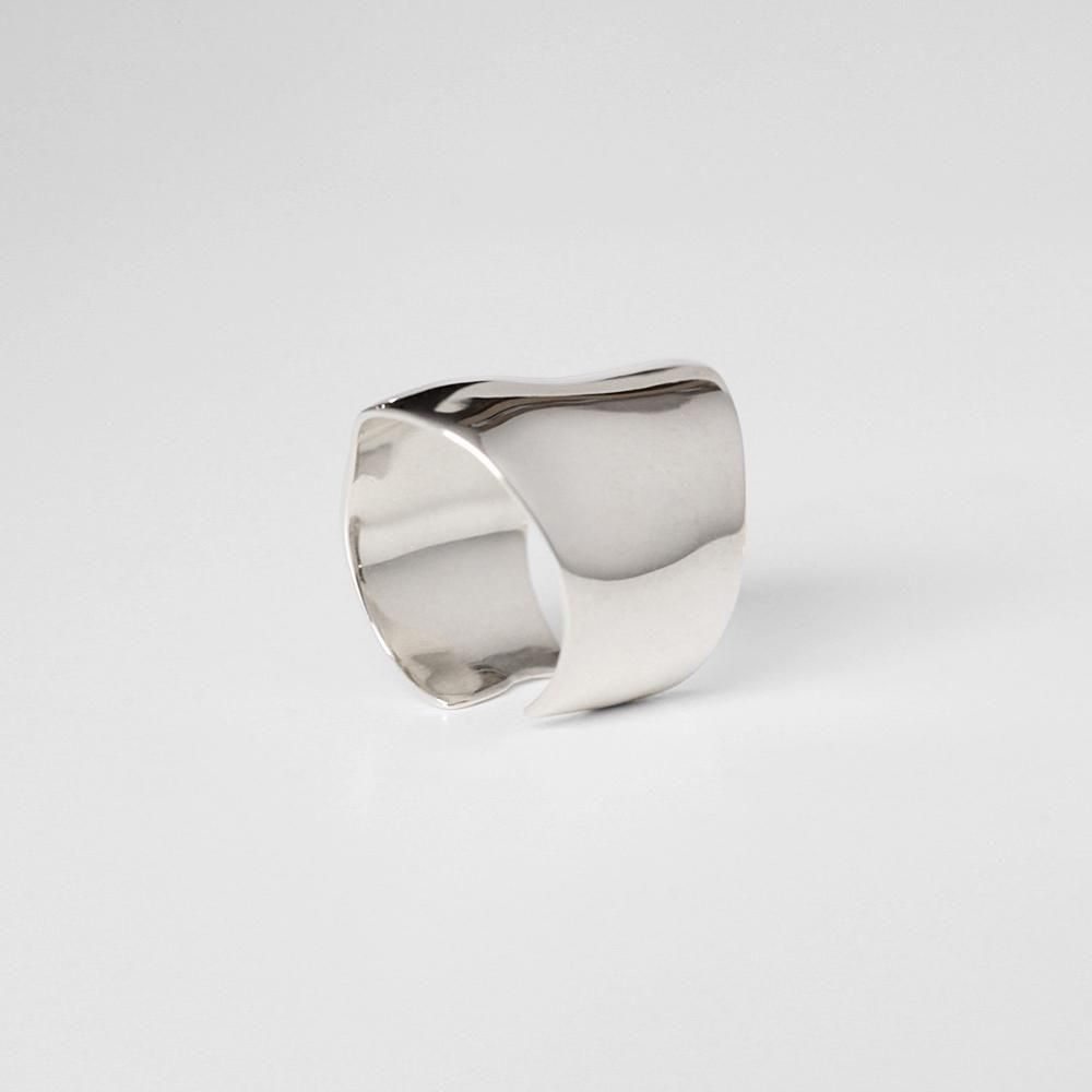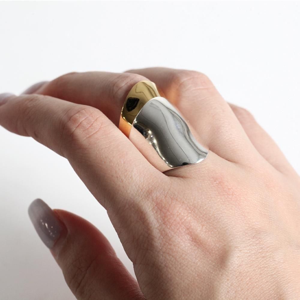 歪んだフォルムが光を遊ばせる、存在感たっぷりのアーマーリング。