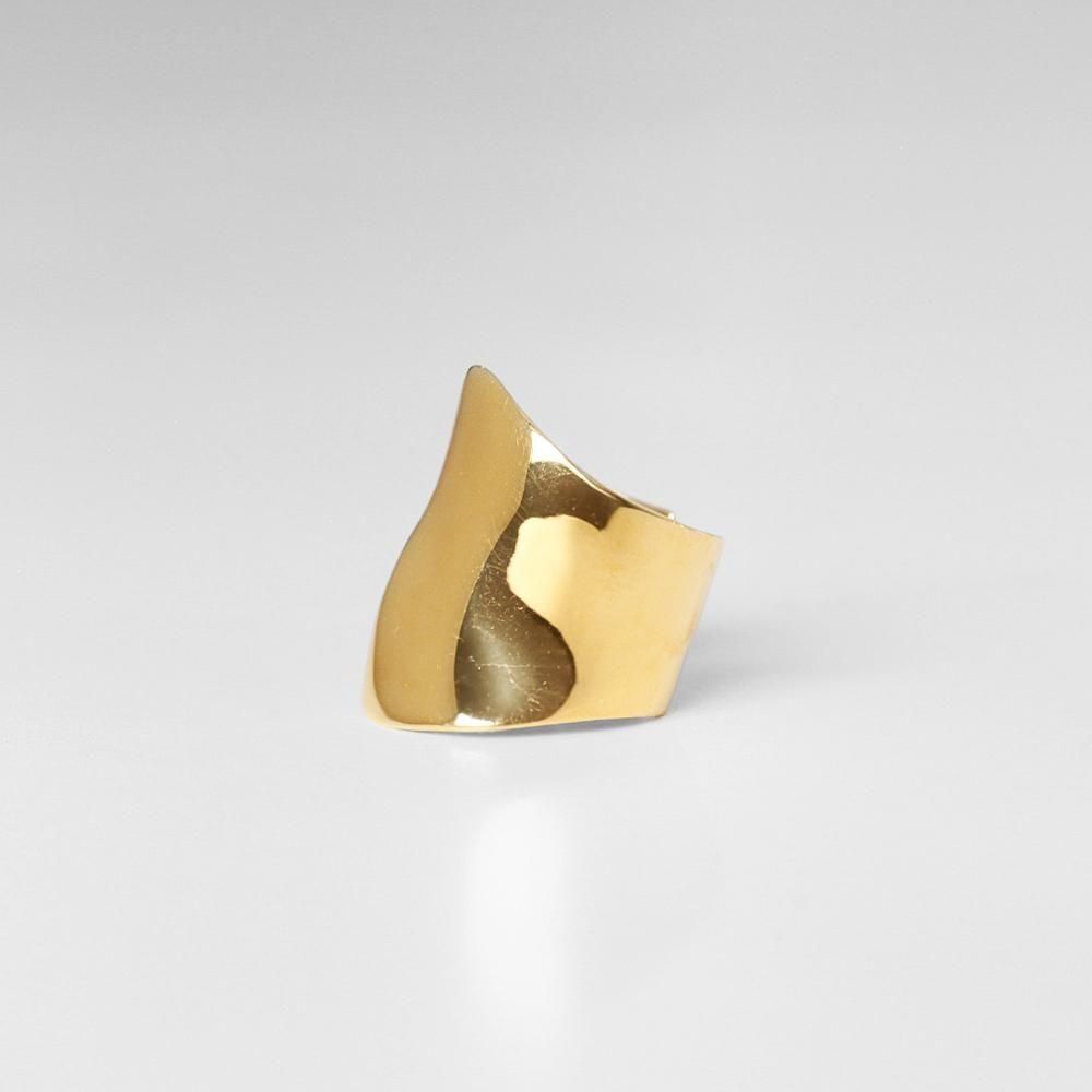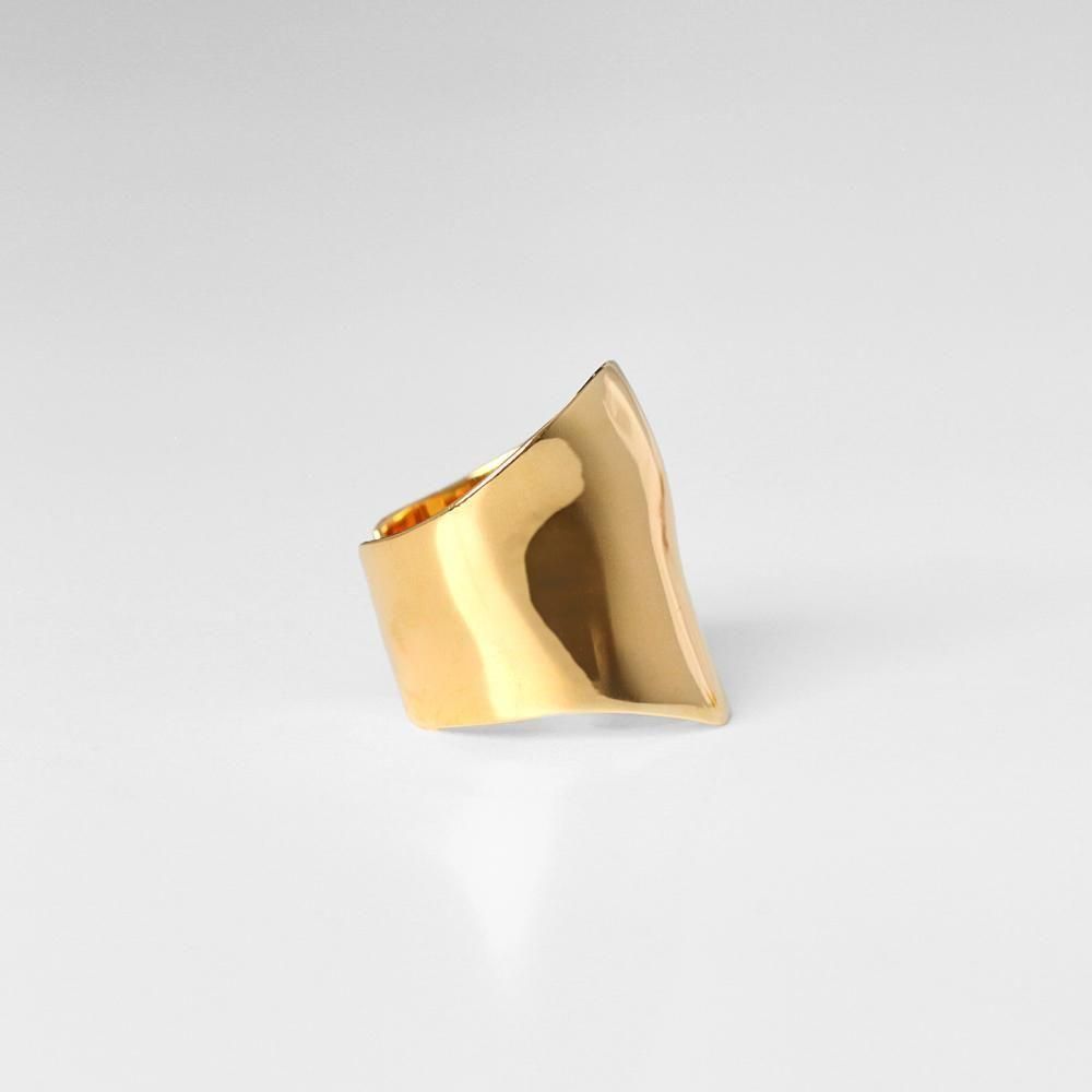 歪んだフォルムが光を遊ばせる、存在感たっぷりのアーマーリング。
