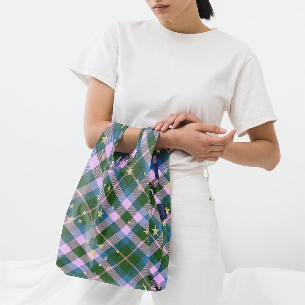 BAGGU (バグー) / BABY エコバッグ - 100%リサイクルナイロン - グリーンスター チェック
