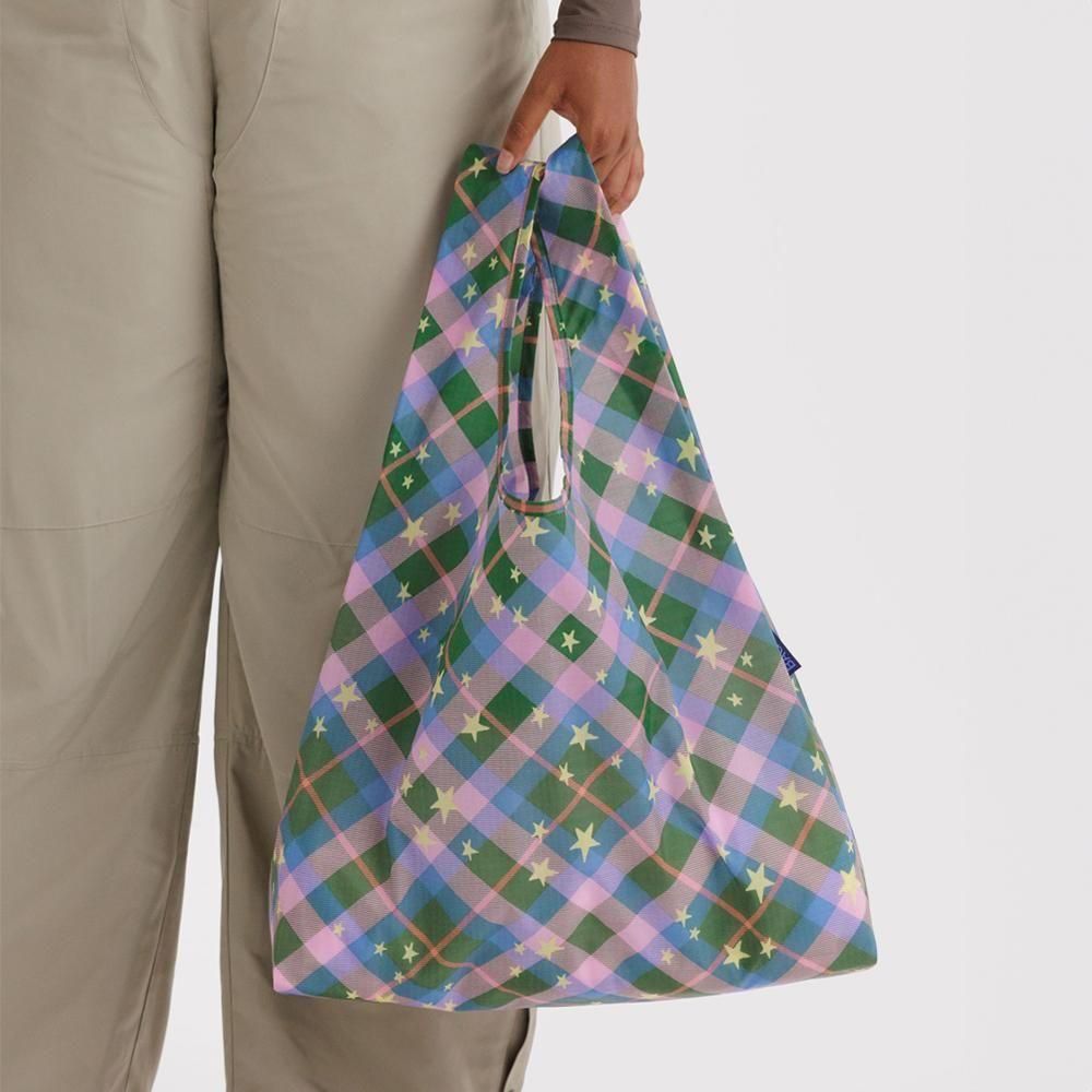 BAGGU (バグー) / STANDARD エコバッグ - 100%リサイクルナイロン - グリーンスター チェック