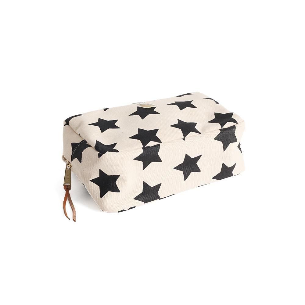 生成りのキャンバス地に星柄がプリントされた容量大きめのポーチです。