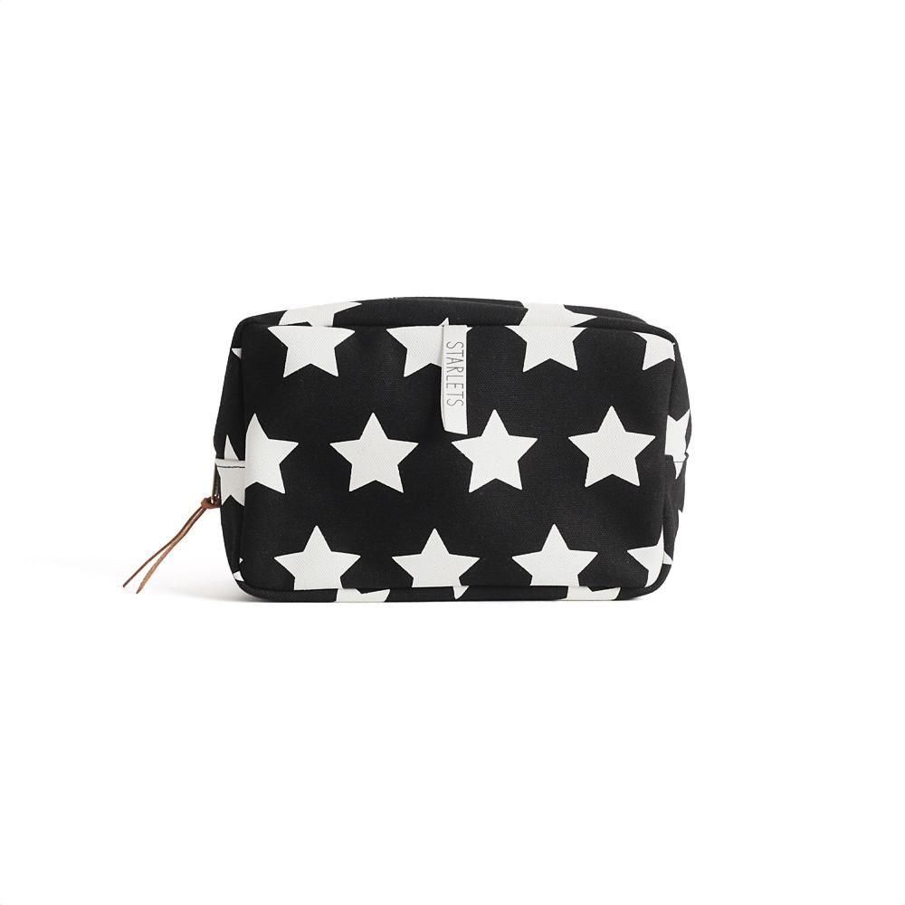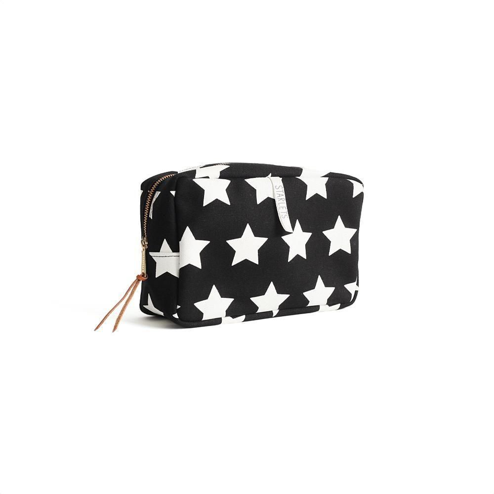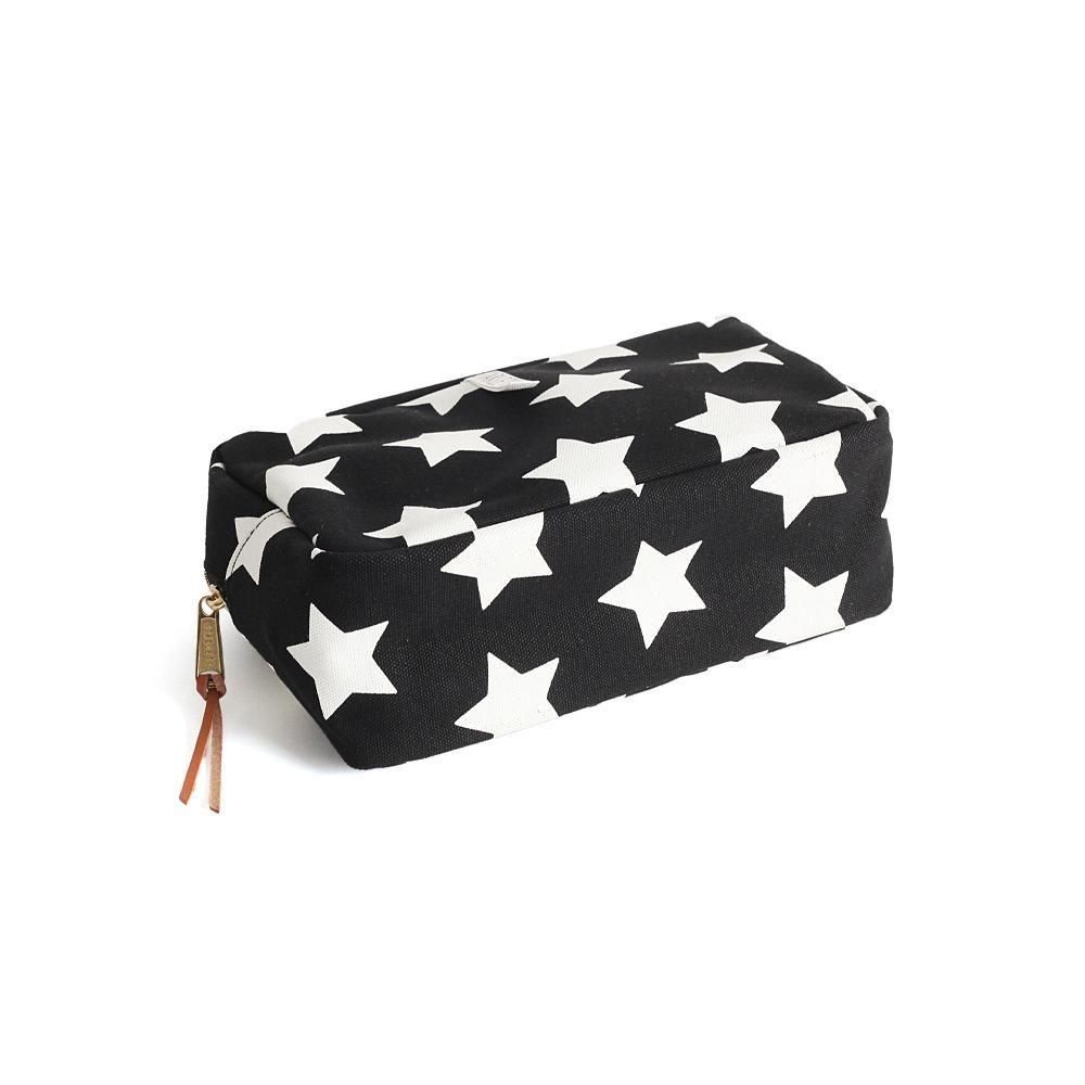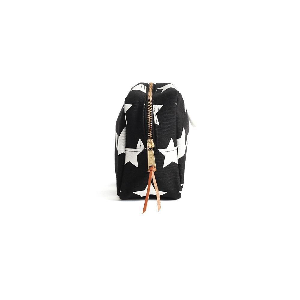 ブラックのキャンバス地にホワイトの星柄がプリントされた容量大きめのポーチです。