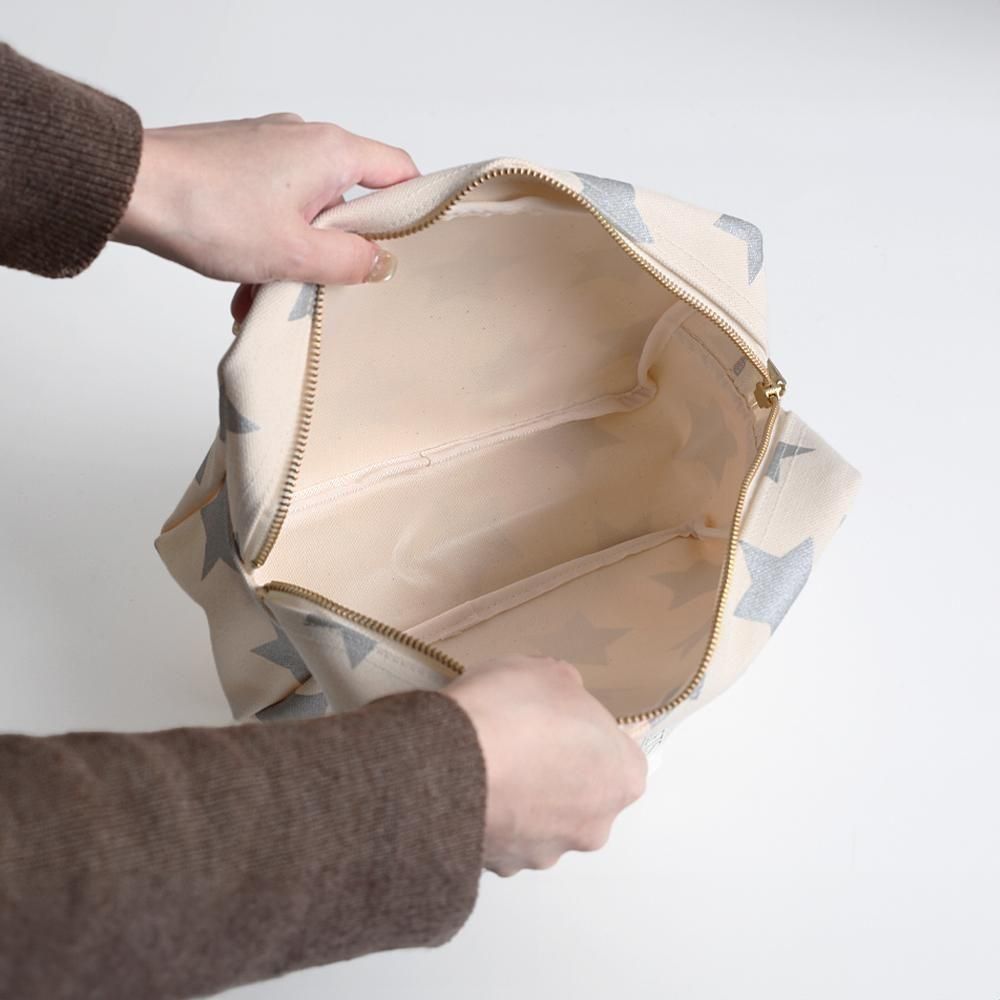 ギフトにもおすすめの、機能性とデザイン性を兼ね備えたスタープリントポーチです。
