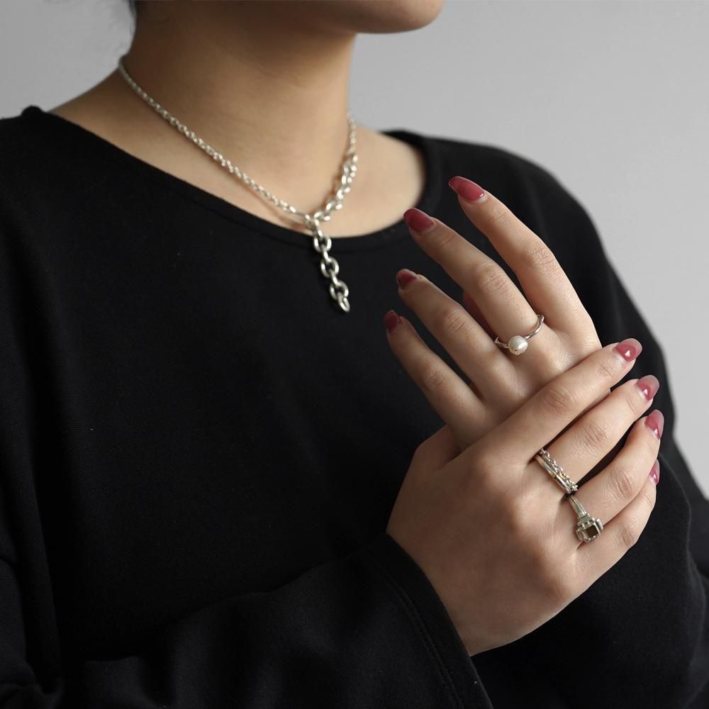 雲からこぼれ落ちる雪をイメージしたシルバージュエリー|アコヤパール付きリング