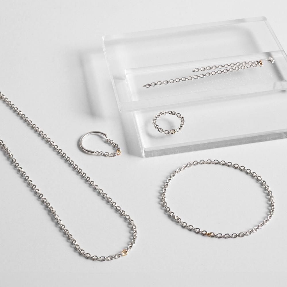 揺らめくチェーンのジュエリーは季節やシーンを問わず、さりげなく存在感を放ち、日常に穏やかな輝きを添えてくれます。
