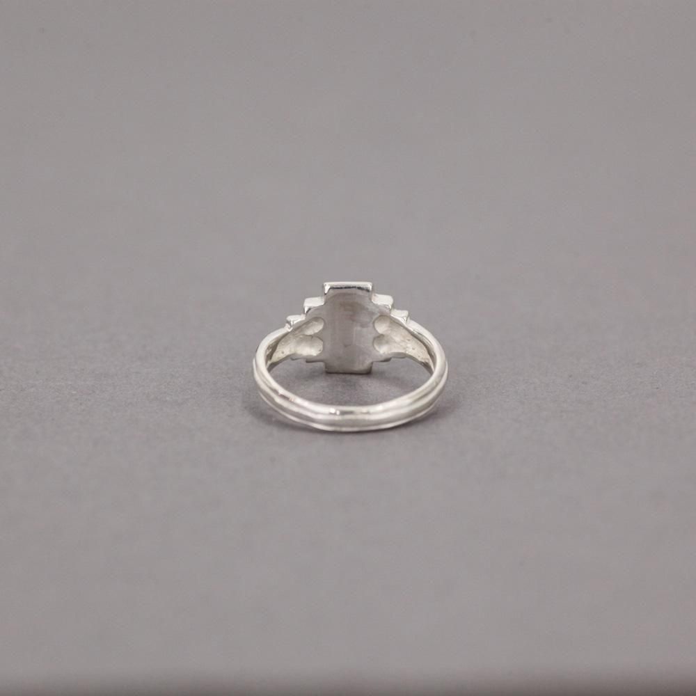 晴れ渡る空と太陽のギラギラした輝きを、ピラミッド型の台形パーツで表現したリング。
