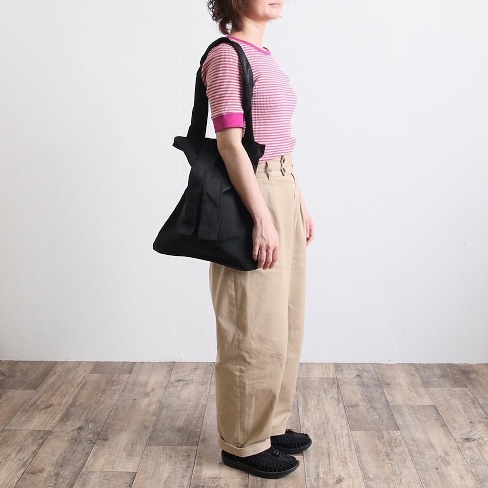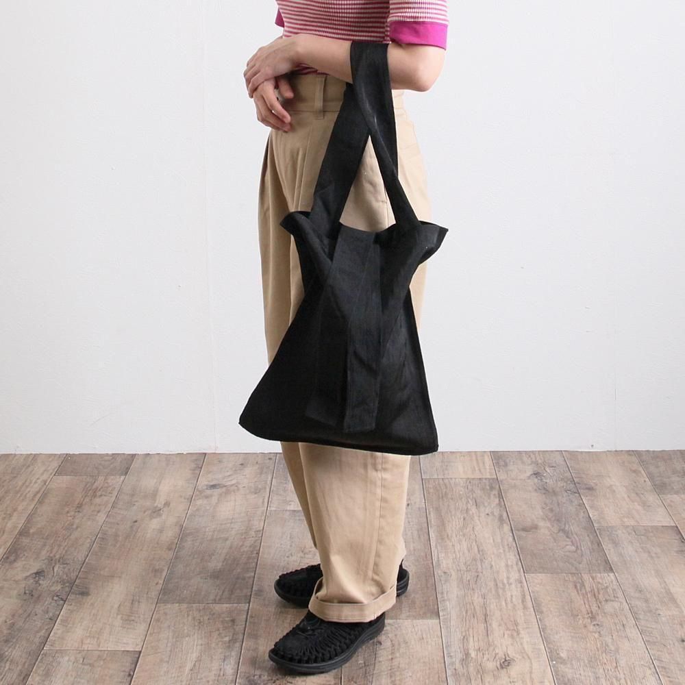 裏返したようなデザインが魅力的な、ワンショルダー仕様のトートバッグ。