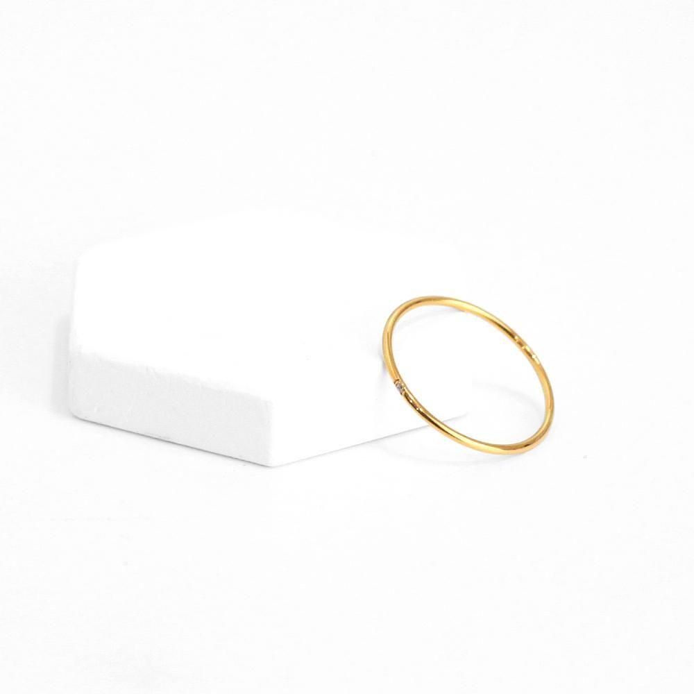 細身のラインに小粒のジルコニアをあしらった繊細なリング。