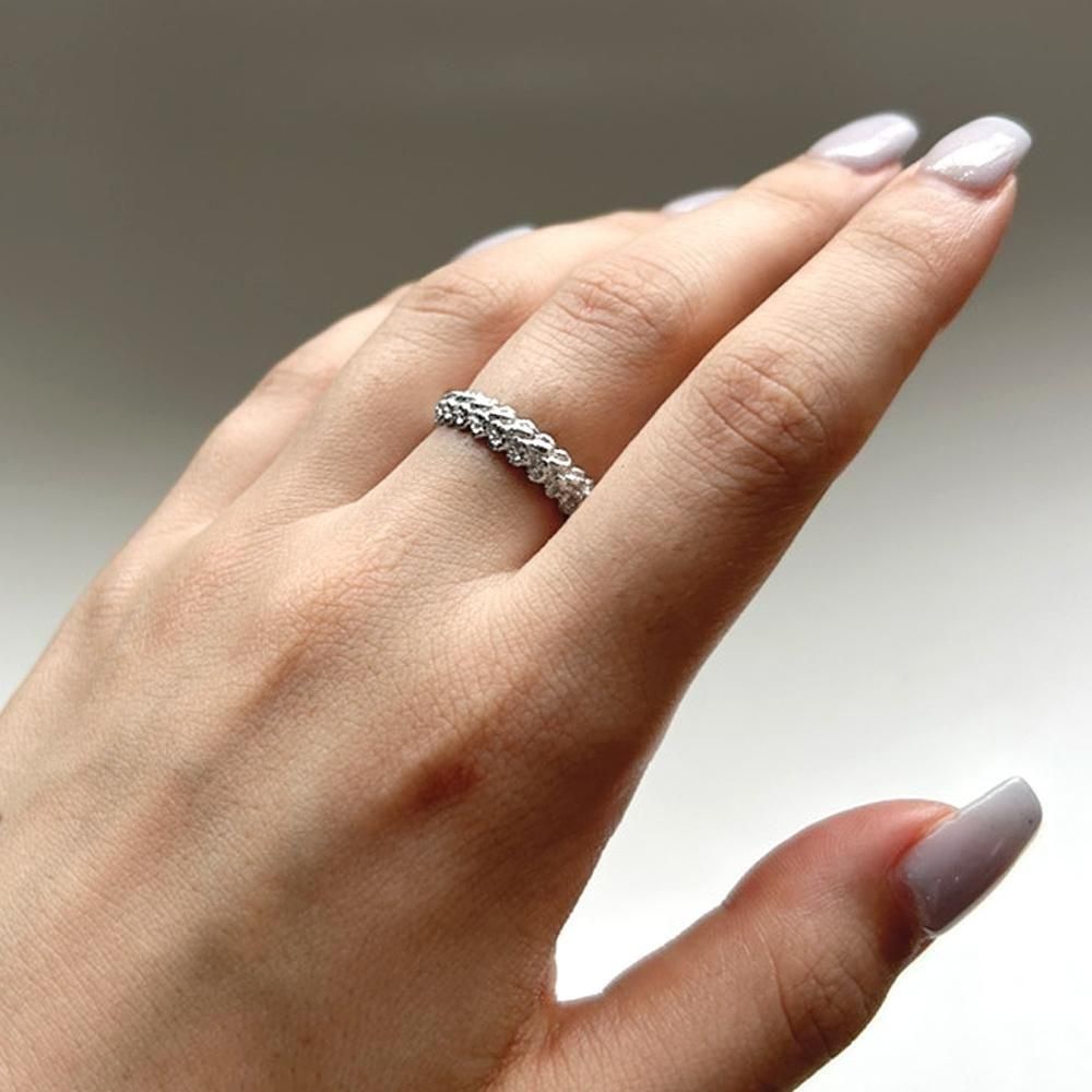 まるで本当に編まれたかのような、繊細な彫刻が美しいリング。